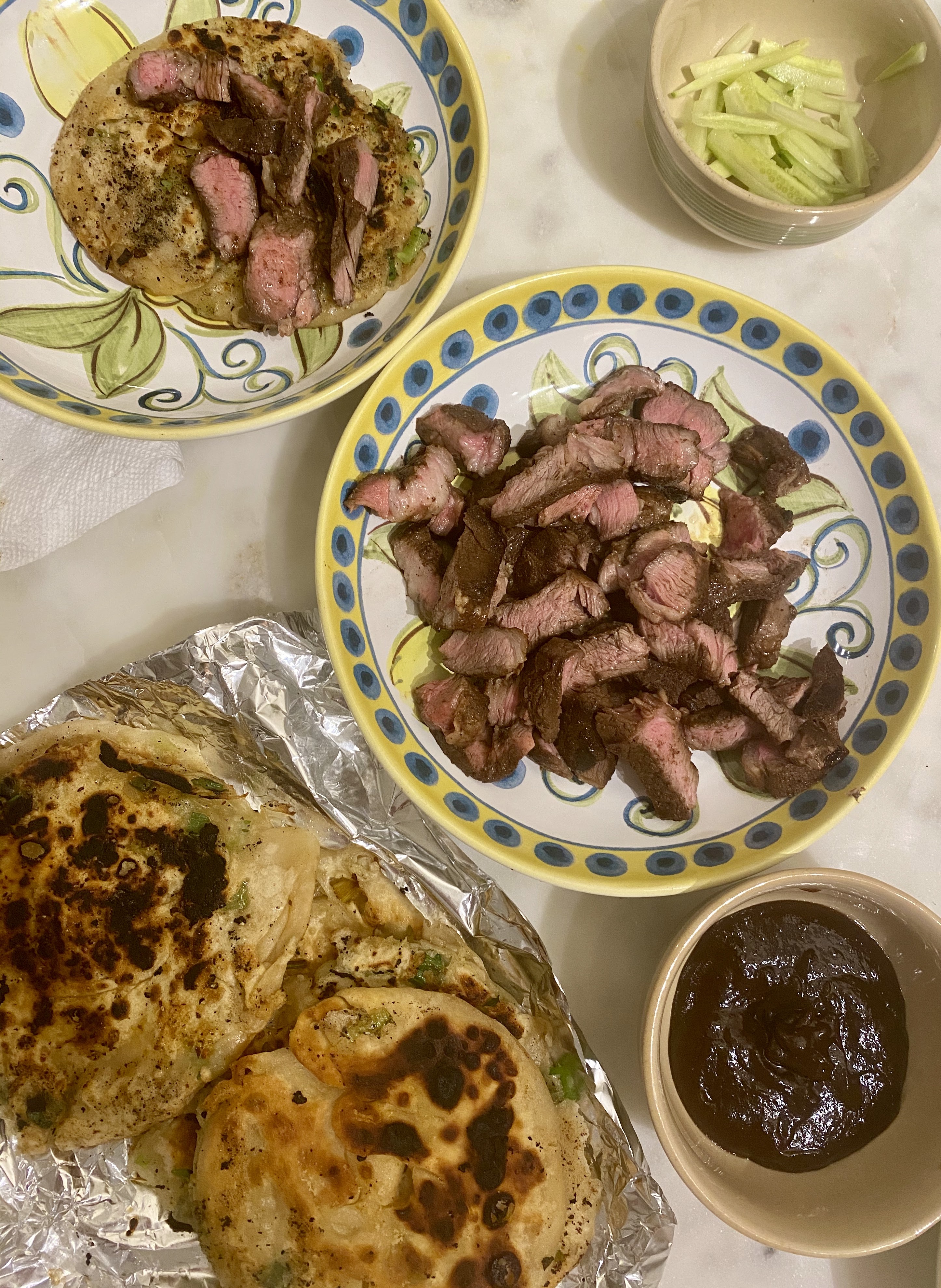 Grilled lamb and scallion pancakes
